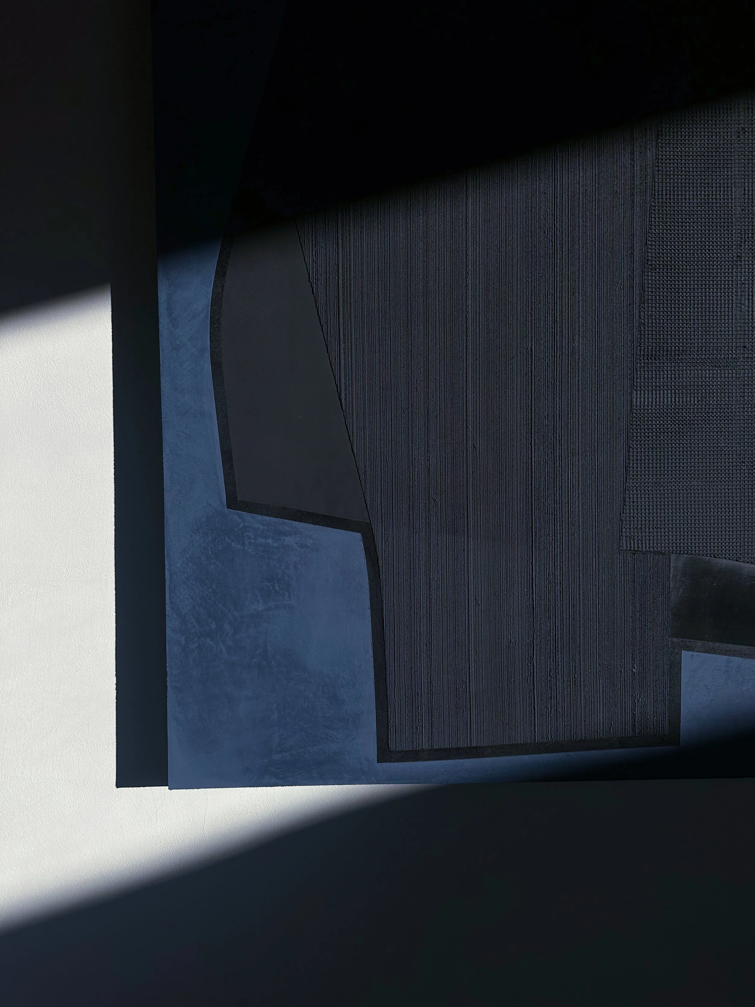 Hortobagy 01 is a textural relief developed from archaic mineral plasters, exploring geometric relationships and material boundaries through layered mineral application.