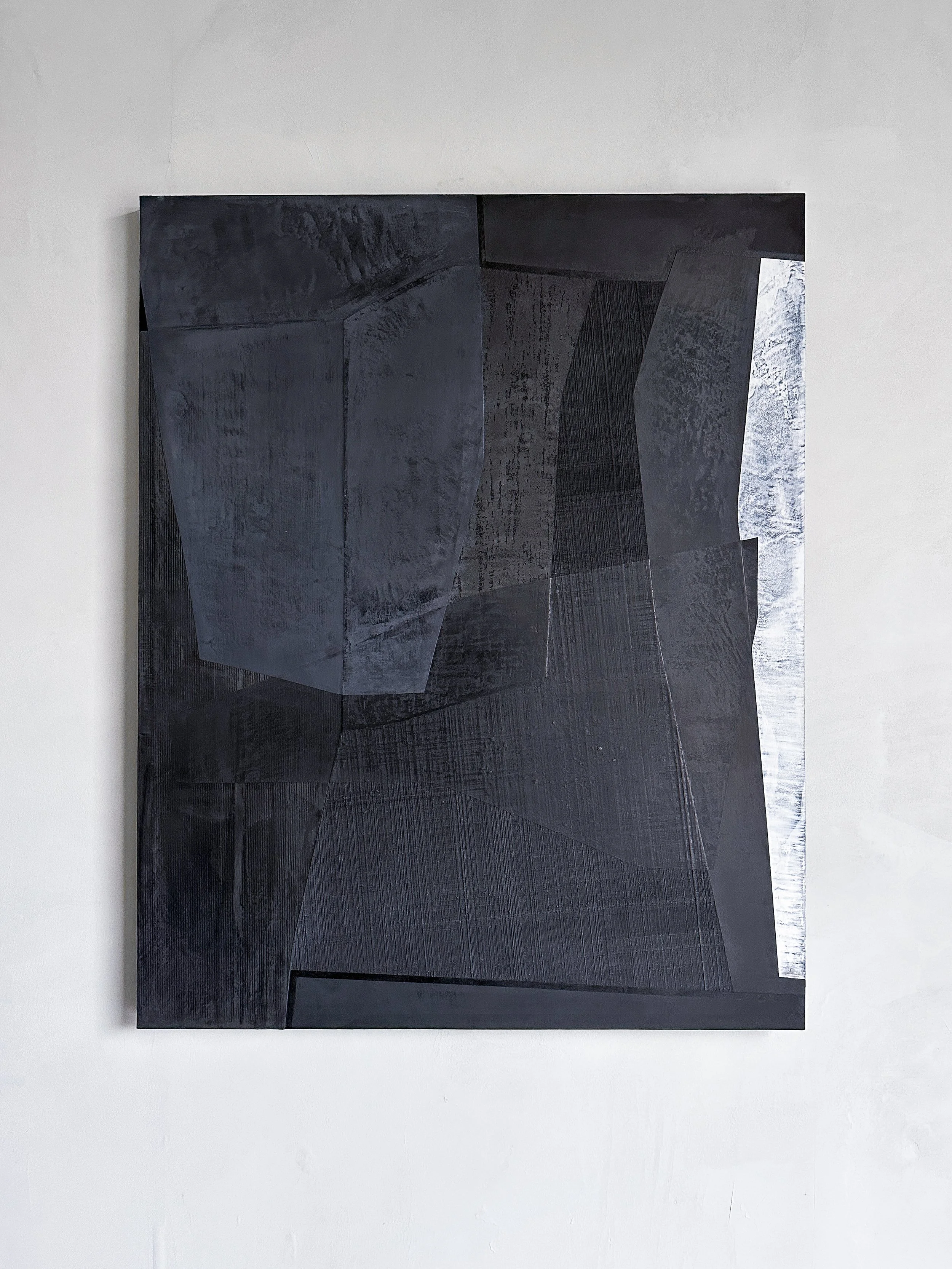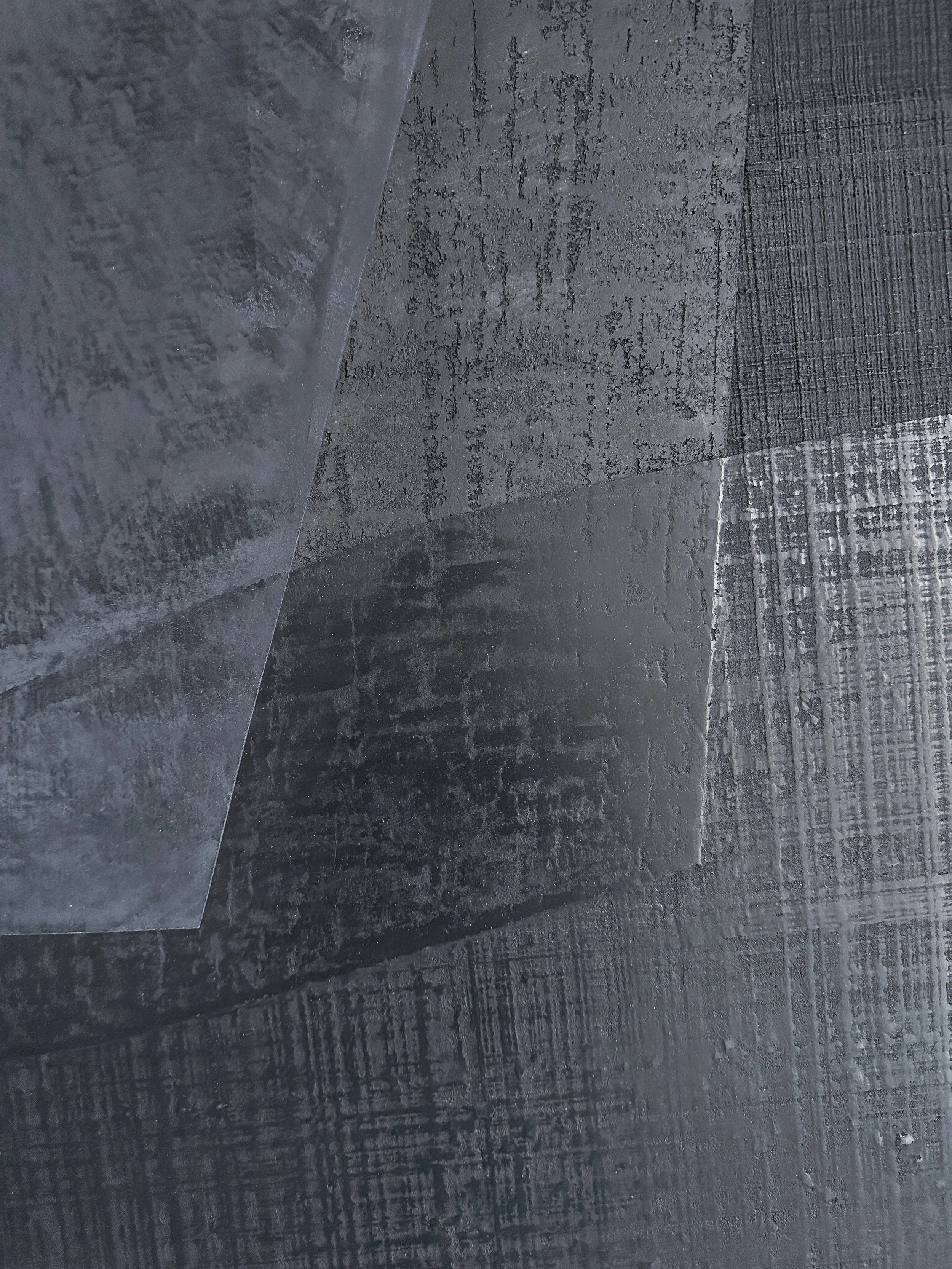 Hortobagy 01 is a textural relief developed from archaic mineral plasters, exploring geometric relationships and material boundaries through layered mineral application.