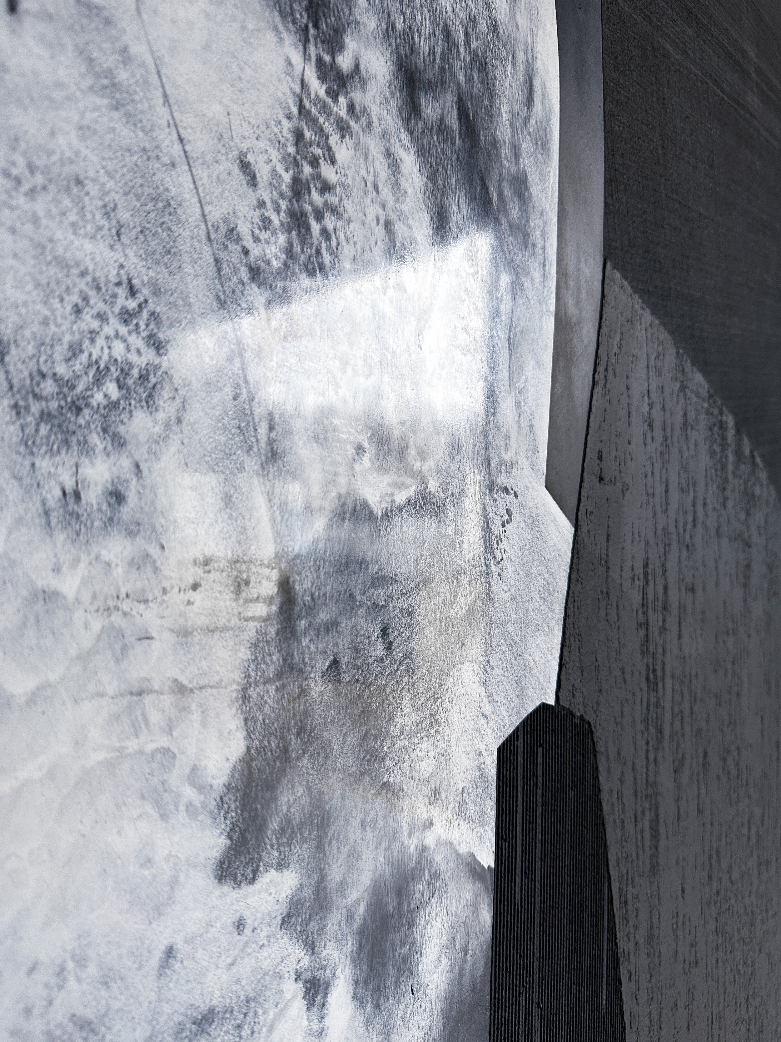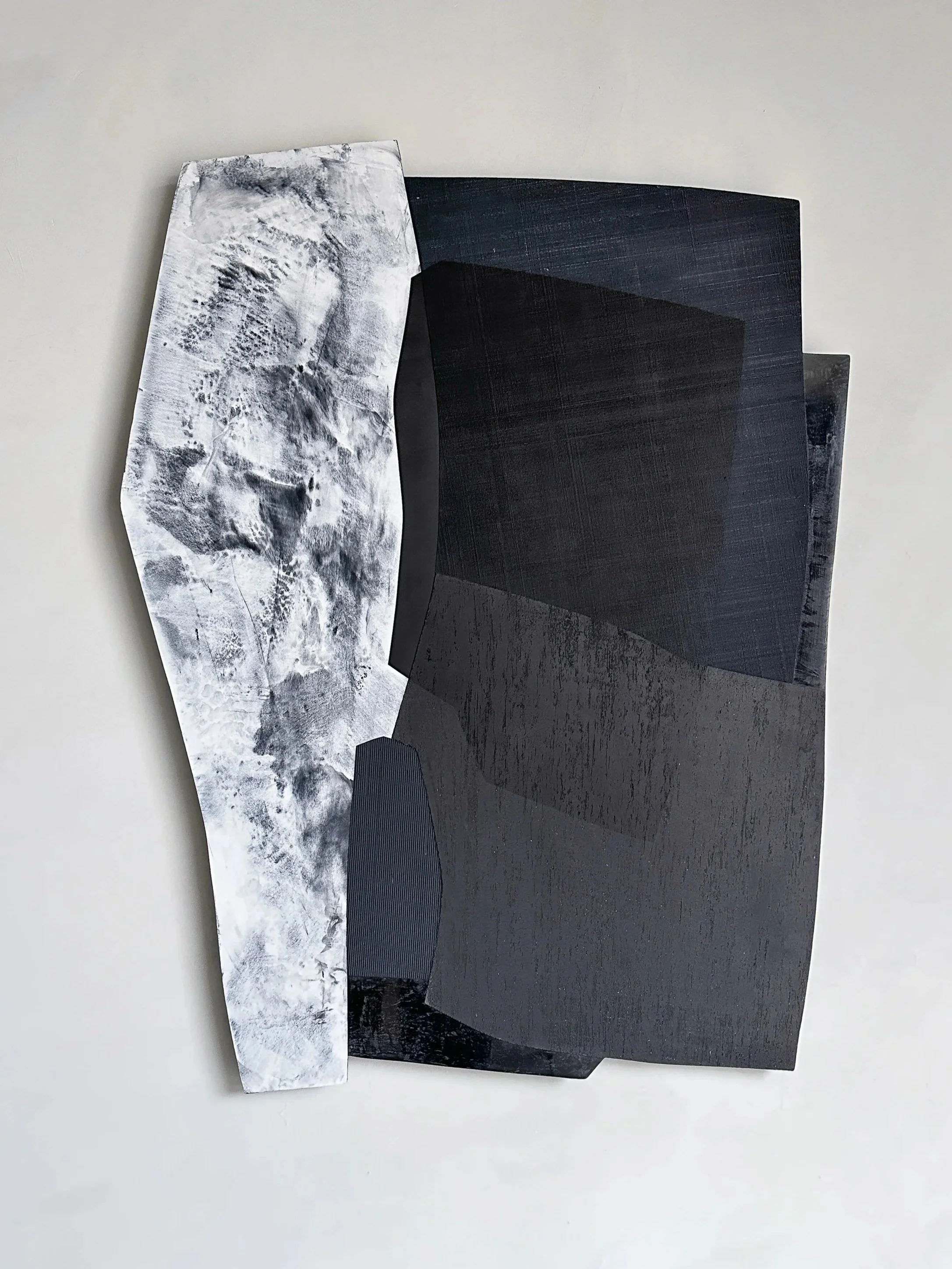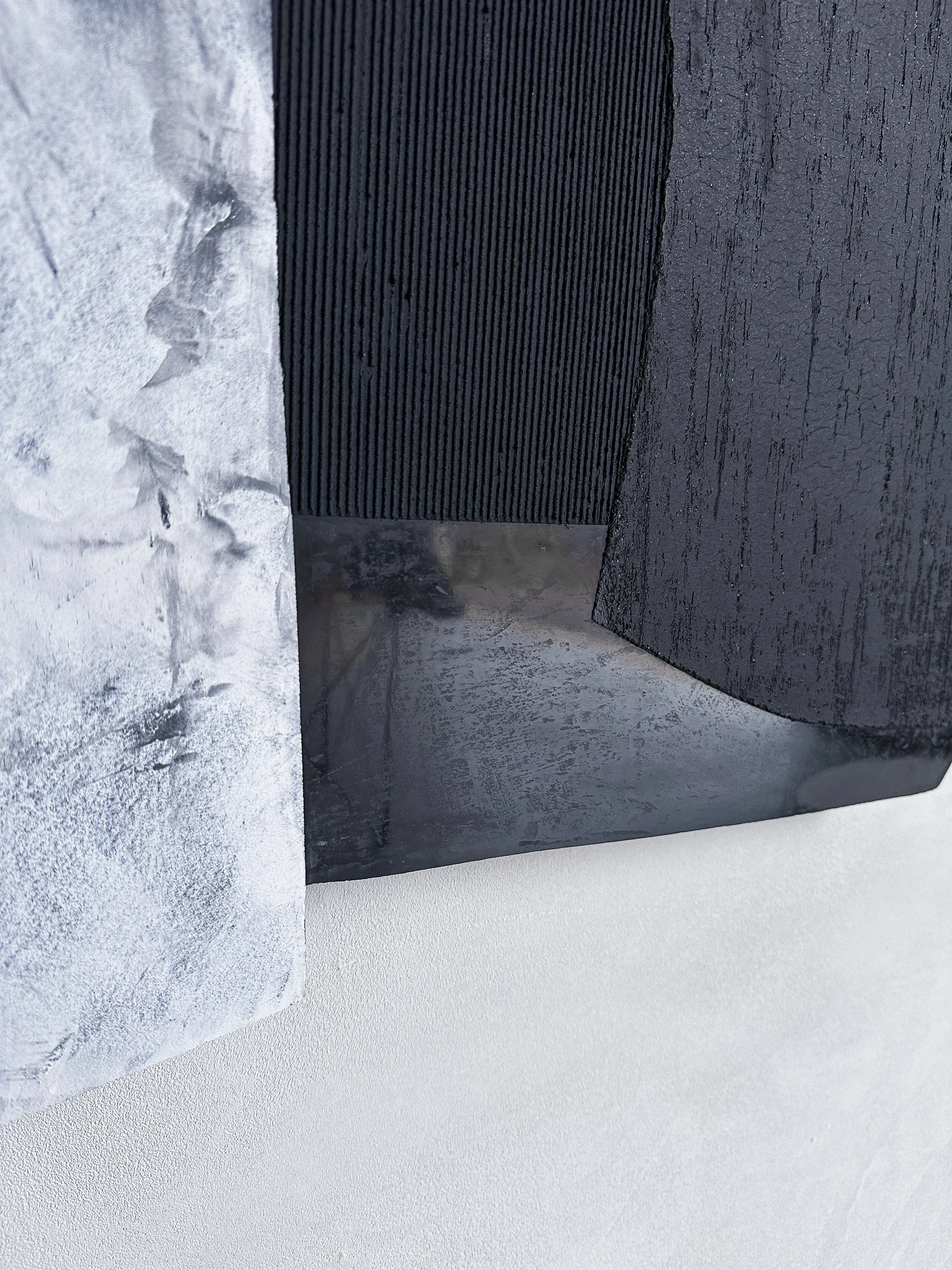 Hortobagy 01 is a textural relief developed from archaic mineral plasters, exploring geometric relationships and material boundaries through layered mineral application.