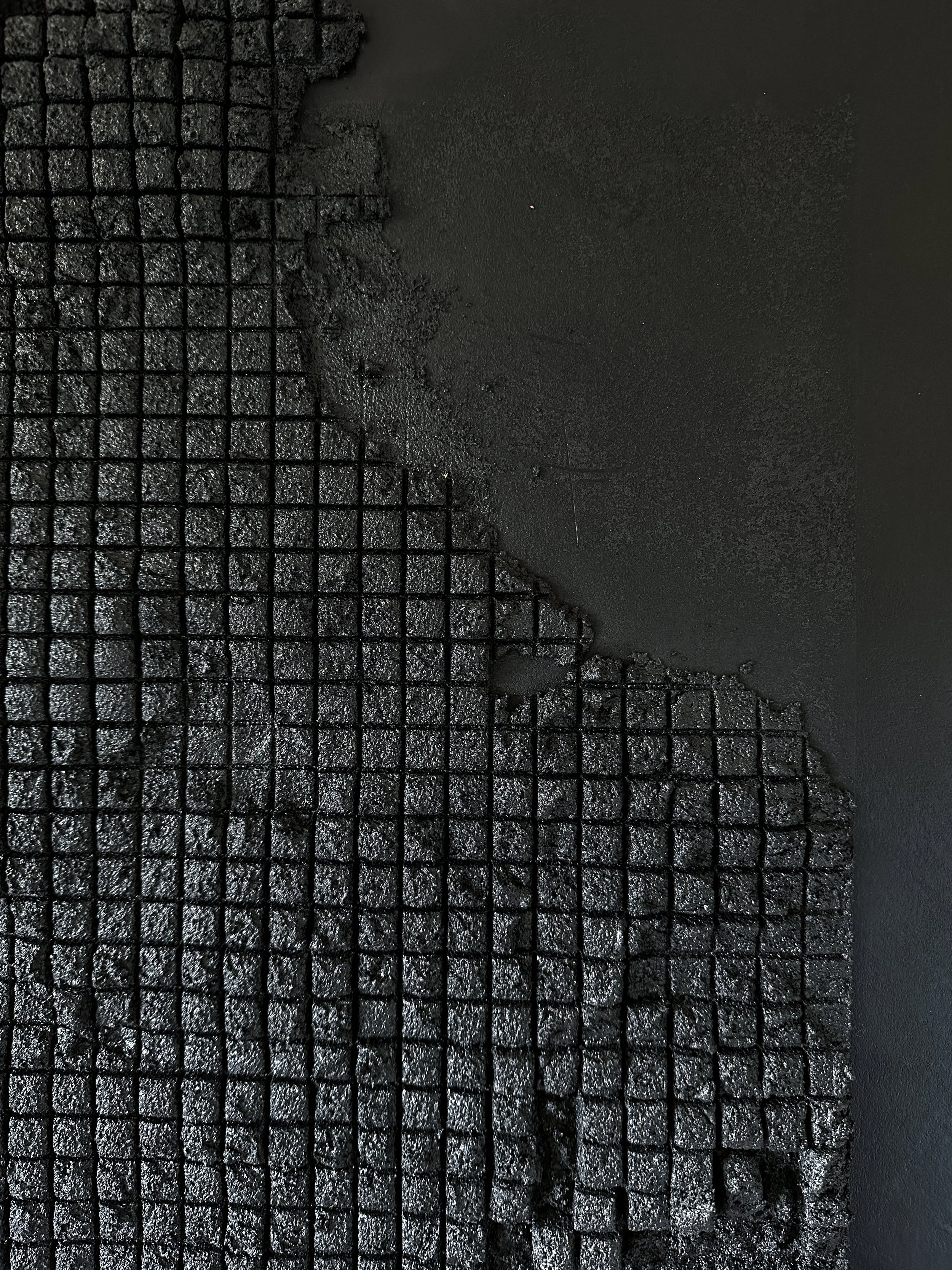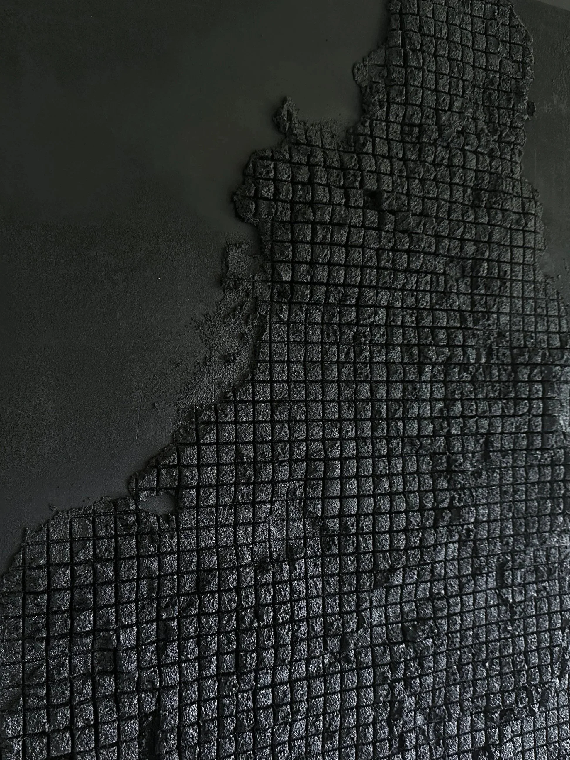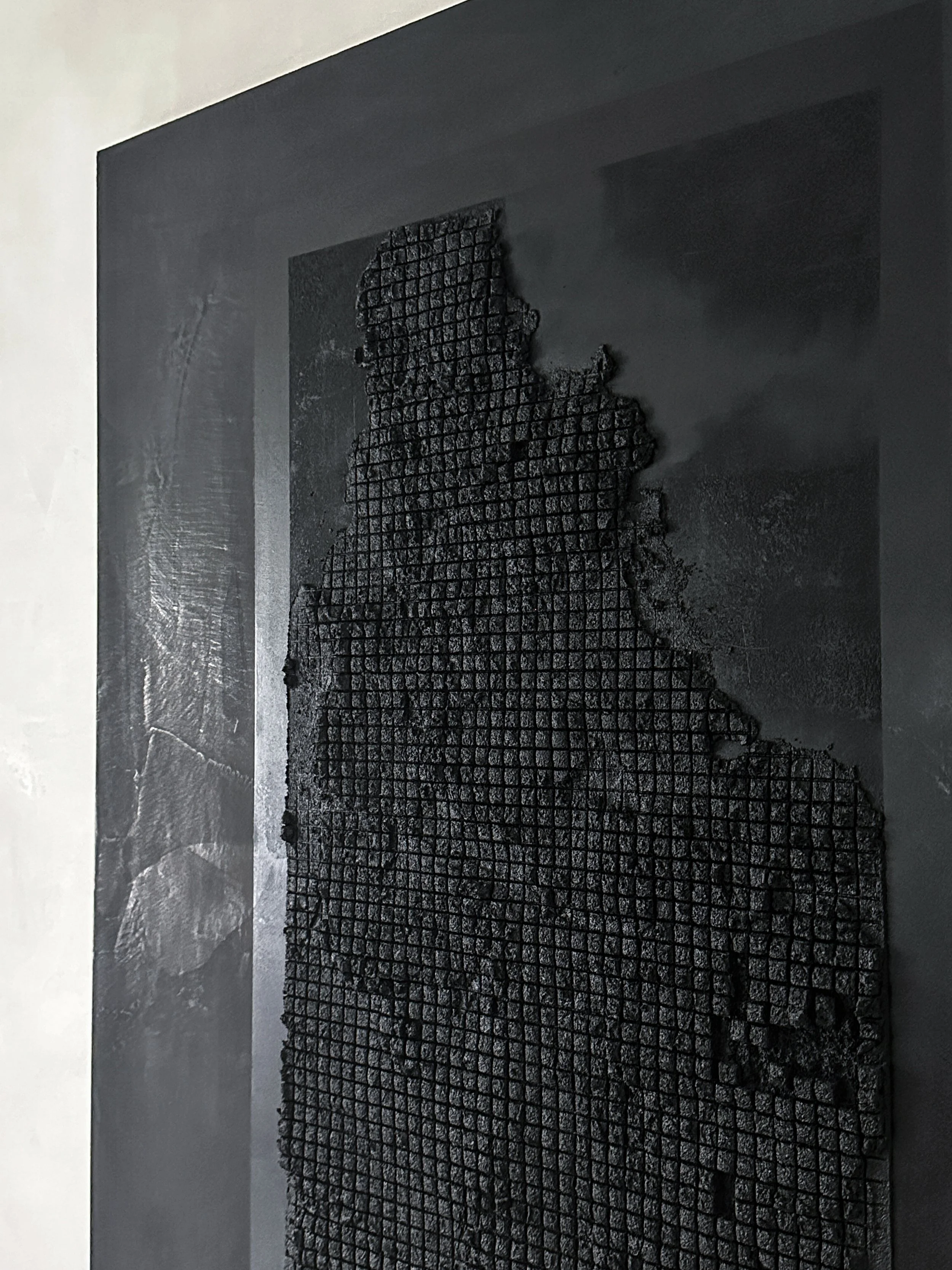 Working in varying shades of black or white, building out sculptural elements that create dimension and shadow, and working with varying levels of reflectivity - this series allows the relationship between light and absolute darkness to be explored. Gloss is contrasted with matte, textures against smoothness, and organic with geometric to create subtle textural shifts and unique experiences that are completely dependent upon lighting and vantage point.