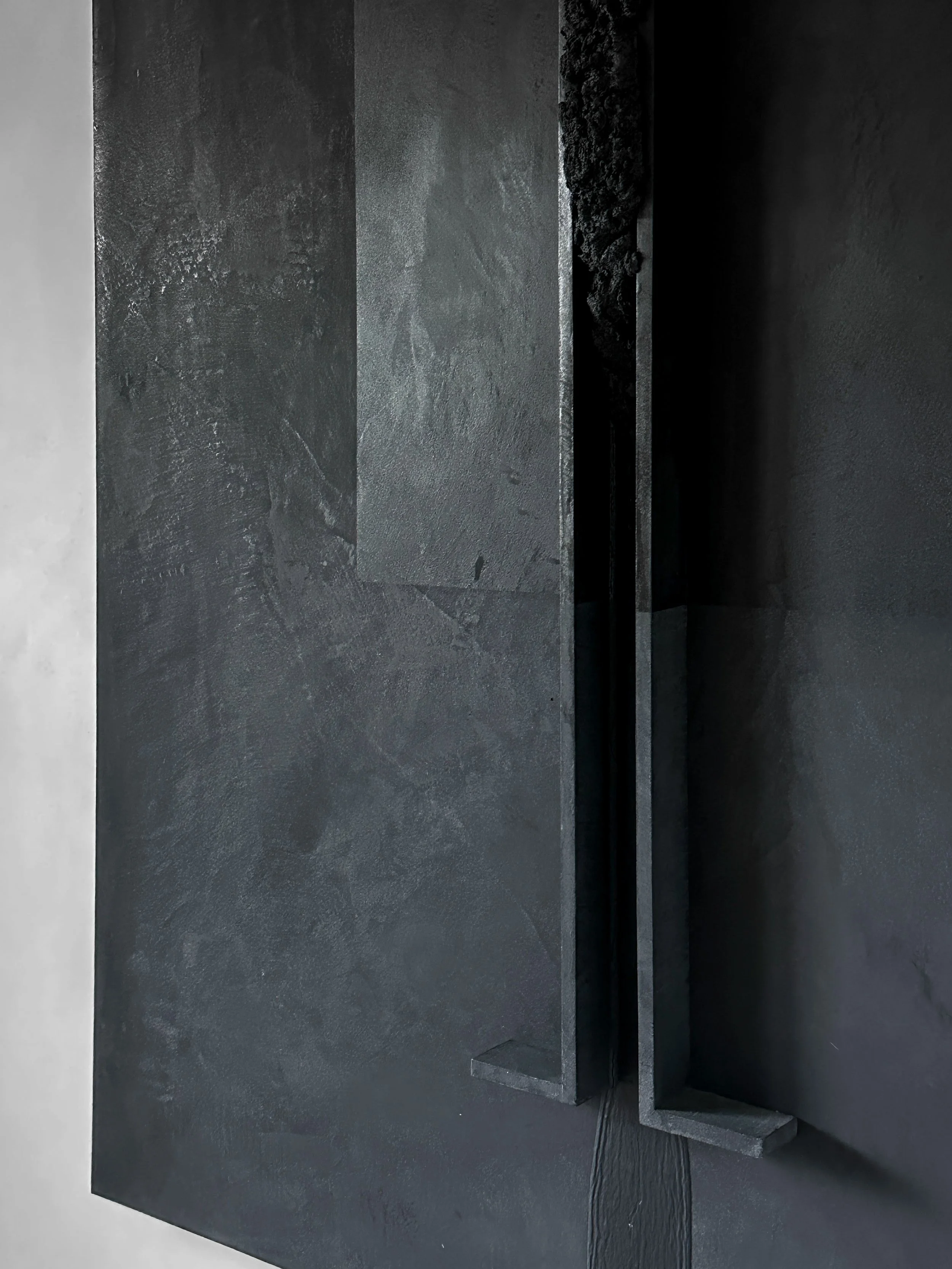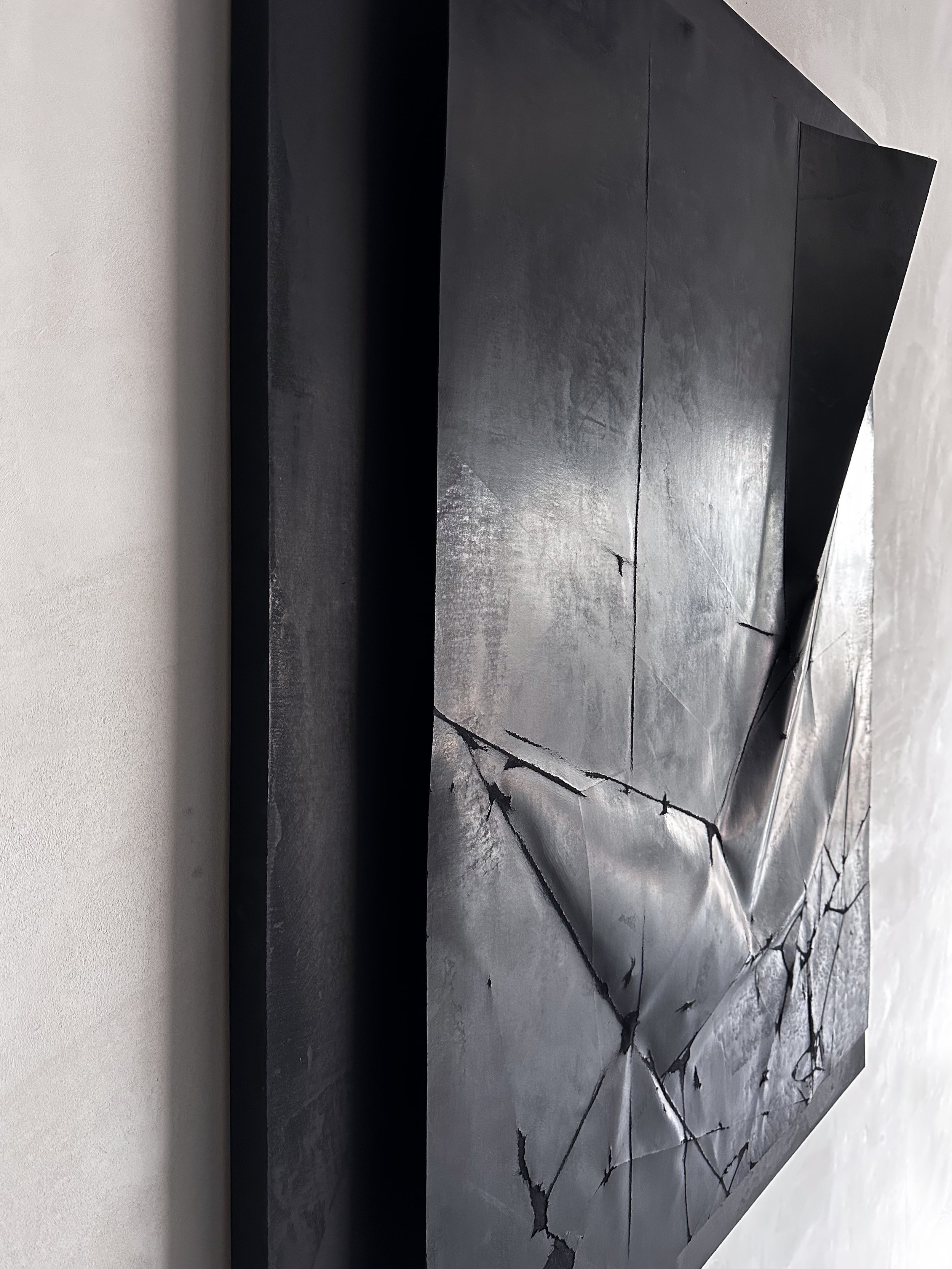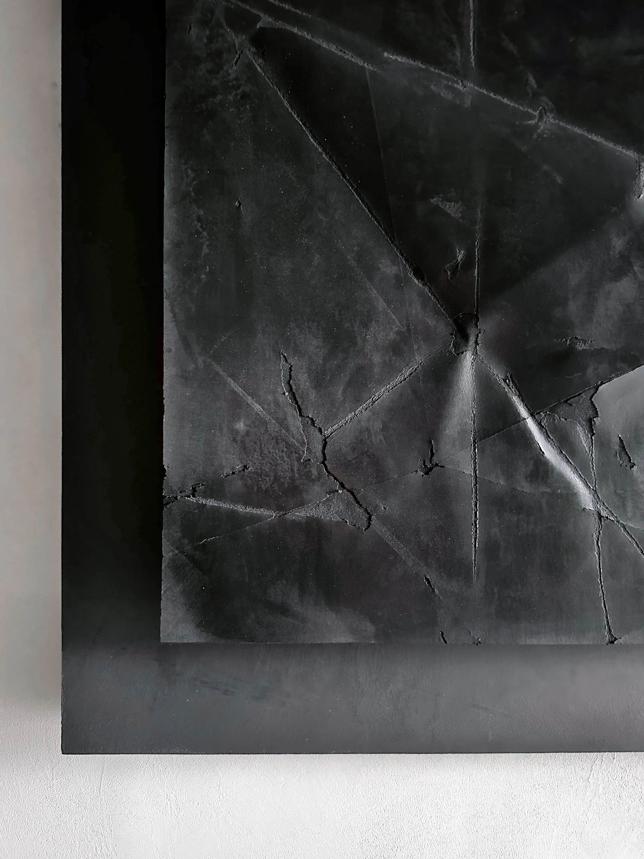 Working in varying shades of black or white, building out sculptural elements that create dimension and shadow, and working with varying levels of reflectivity - this series allows the relationship between light and absolute darkness to be explored. Gloss is contrasted with matte, textures against smoothness, and organic with geometric to create subtle textural shifts and unique experiences that are completely dependent upon lighting and vantage point.