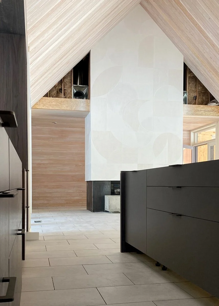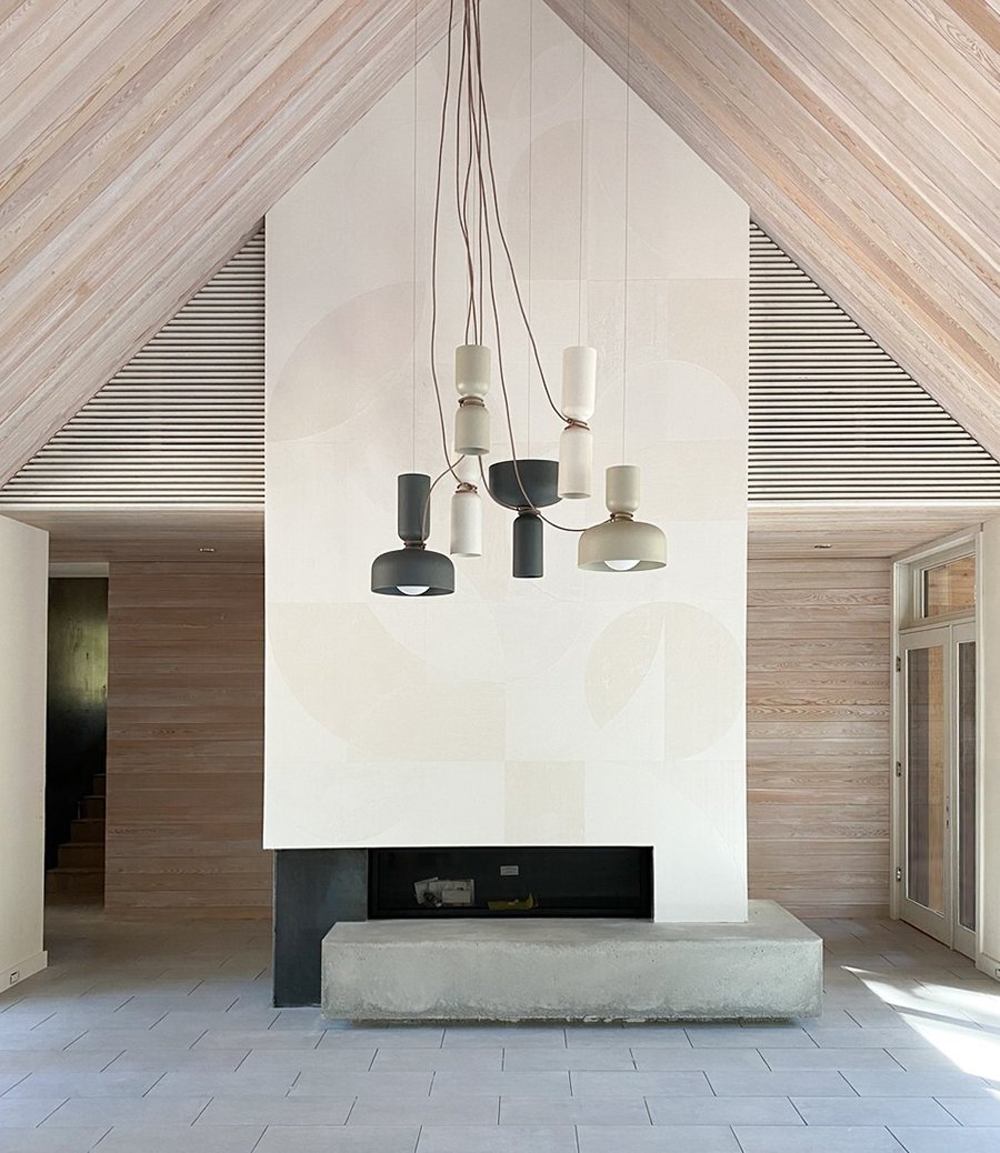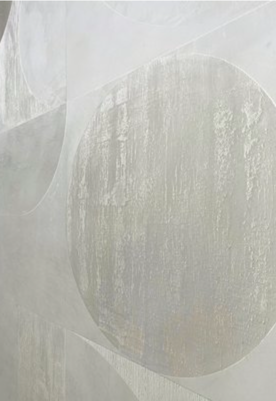 Geometric fireplace piece influenced by Bauhaus design and a smaller piece commissioned by Katie and Jasen Melnick of Fizz Creative. Using three different plasters and overlaid geometric shapes, this piece uses texture and light that creates a completely different viewing experience based on the time of day and the viewer’s standpoint.