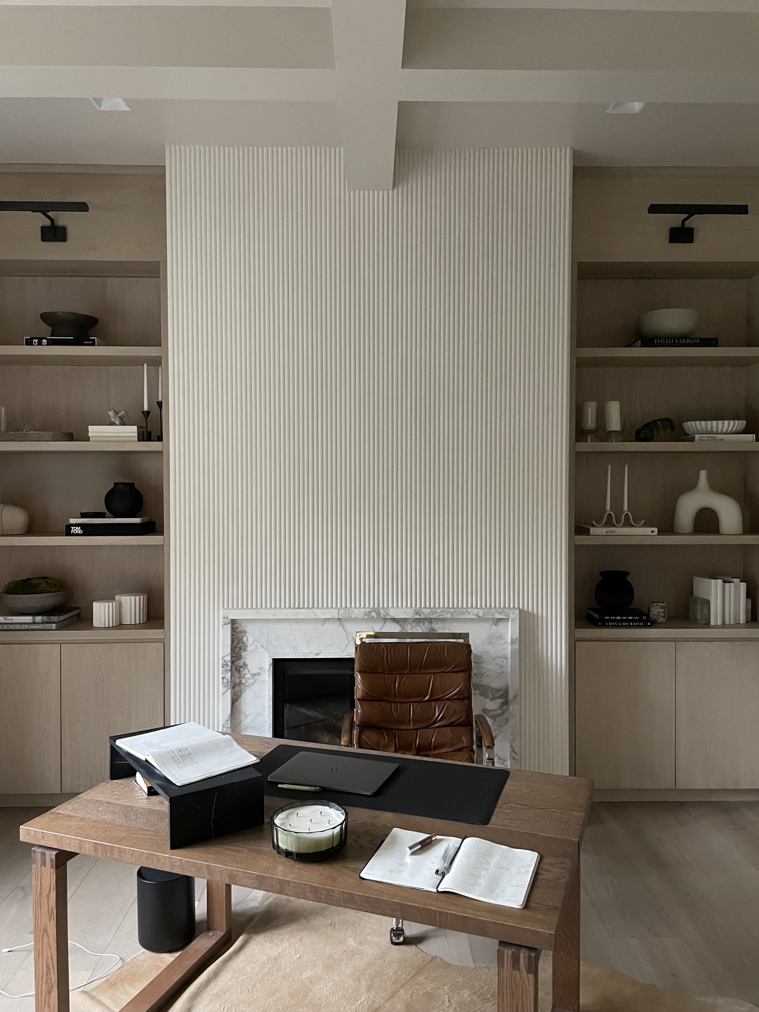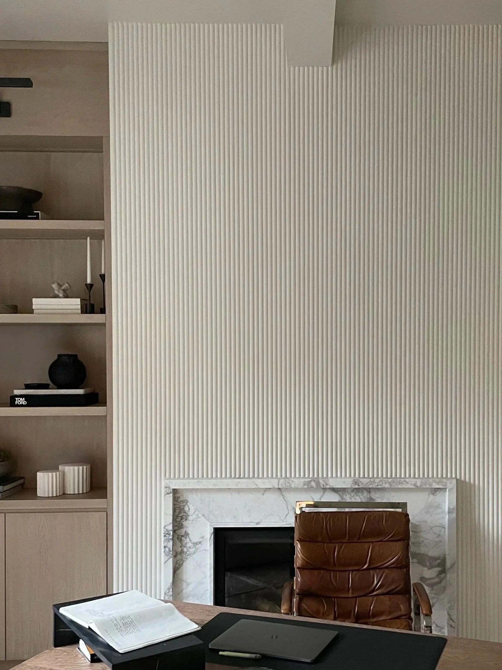Available in a range of custom profiles - from traditional concave fluting to convex reeding - each surface is hand-pulled using tools we design and fabricate in-house. Scale, depth, and spacing can be precisely adjusted, allowing for a consistent architectural rhythm or a more variegated pattern. Profiles may be calibrated to respond to ceiling heights, millwork alignment, or adjacent materials within the project.