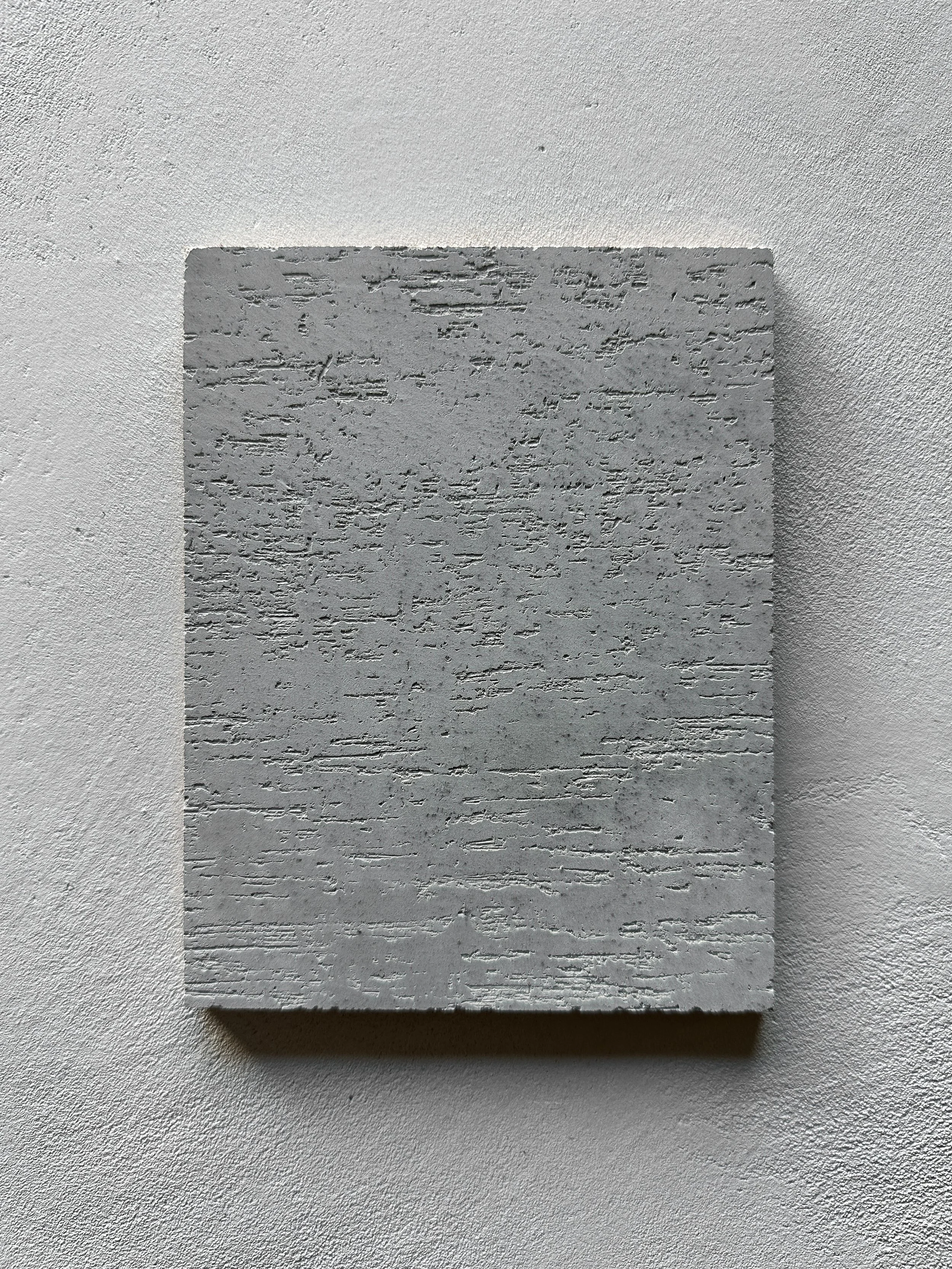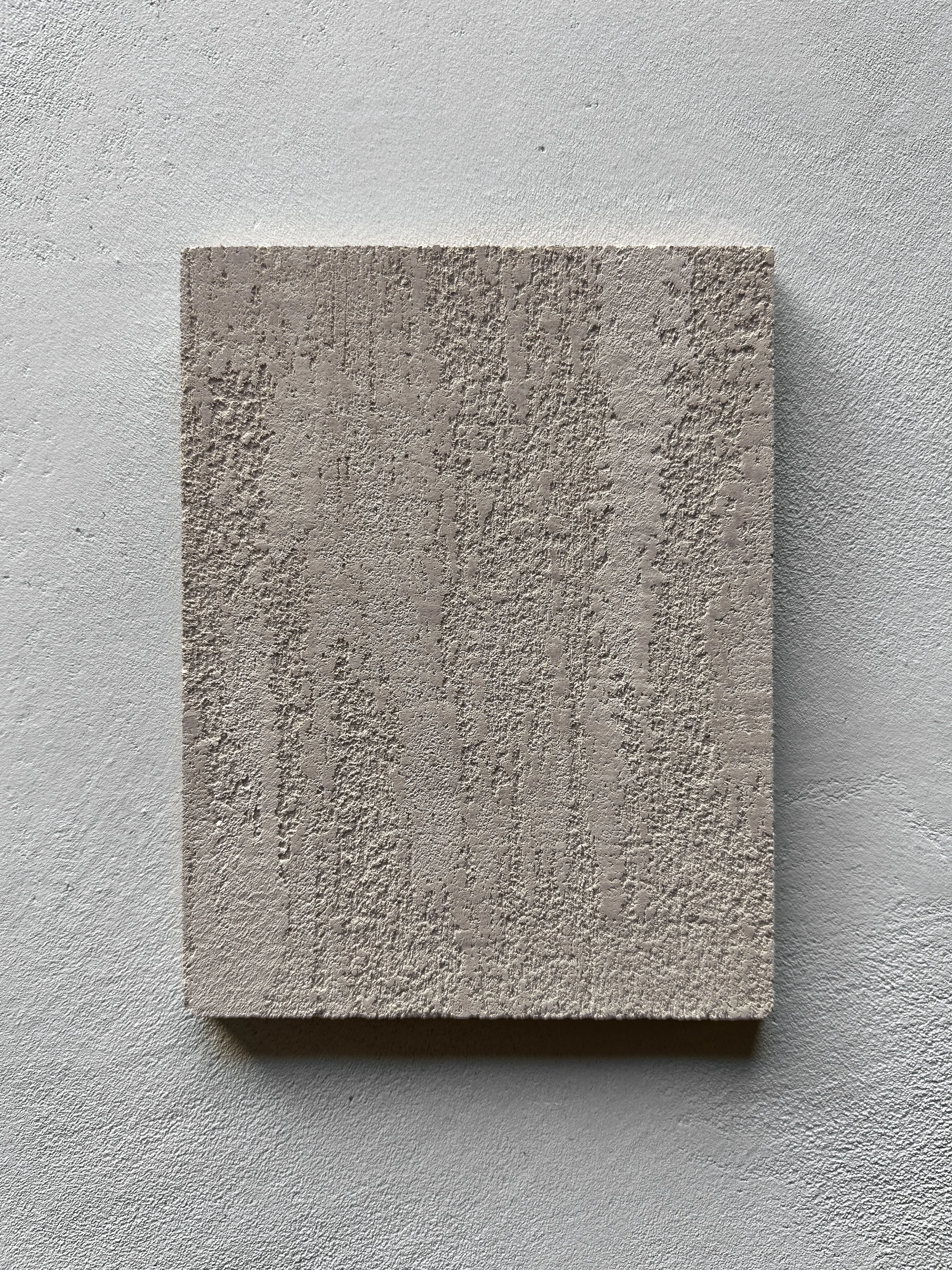 This surface holds a matte, mineral depth with subtle striation and inherent variation. Tool marks remain visible, creating a layered, stone-like character with depth and movement.The finish can be calibrated across a range of textures, from more compact and restrained to increasingly open and stratified, depending on the spatial intent.
