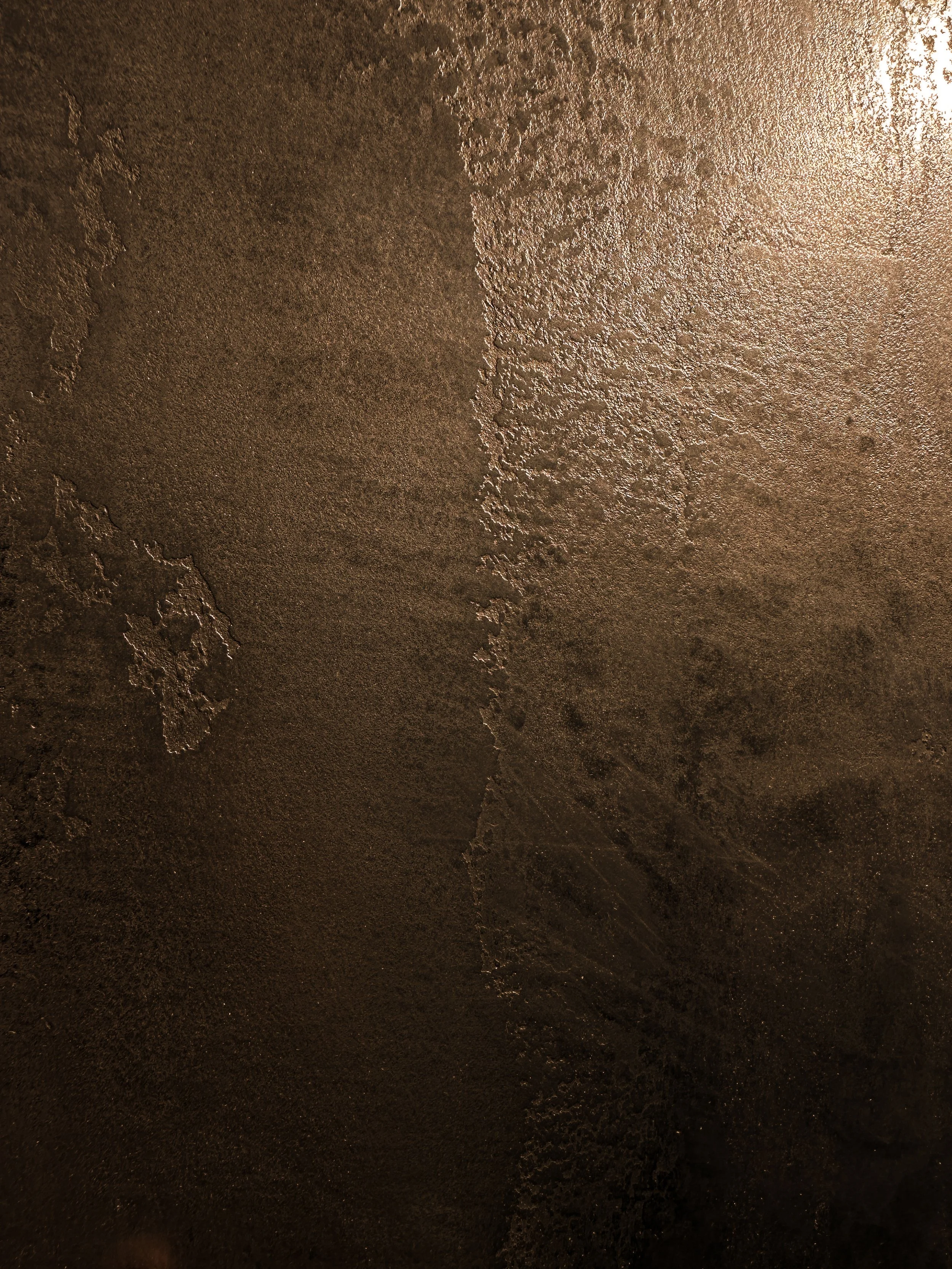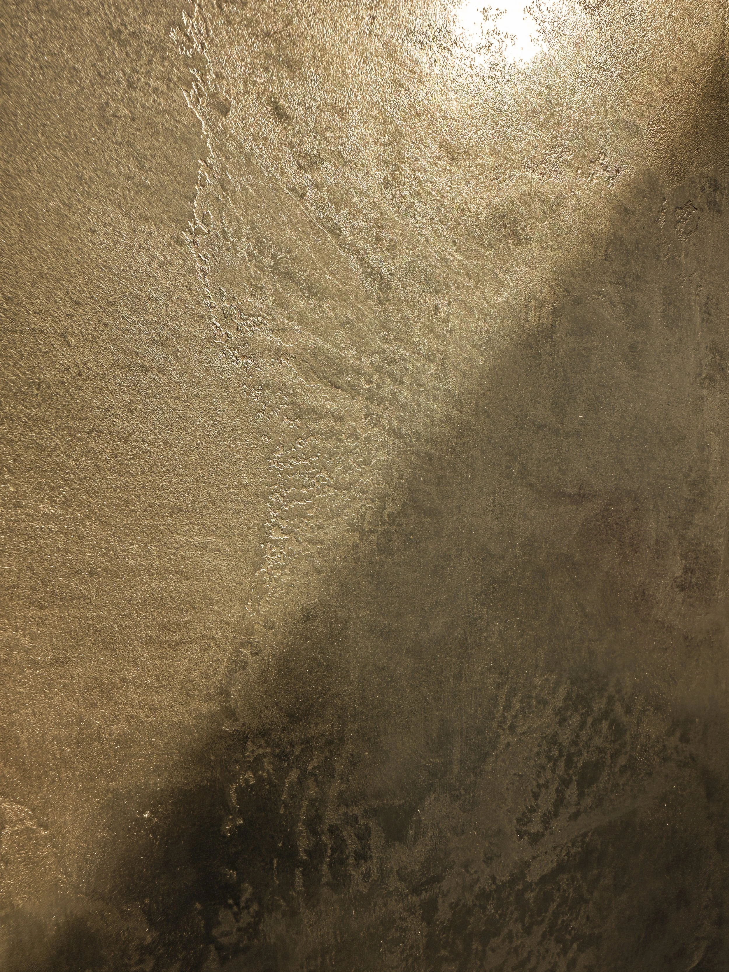 Metallic plaster is developed by introducing fine metallic pigments into mineral plaster, producing a surface with a quiet reflective quality. The material is applied and worked by hand, allowing the level of sheen to be calibrated during application.